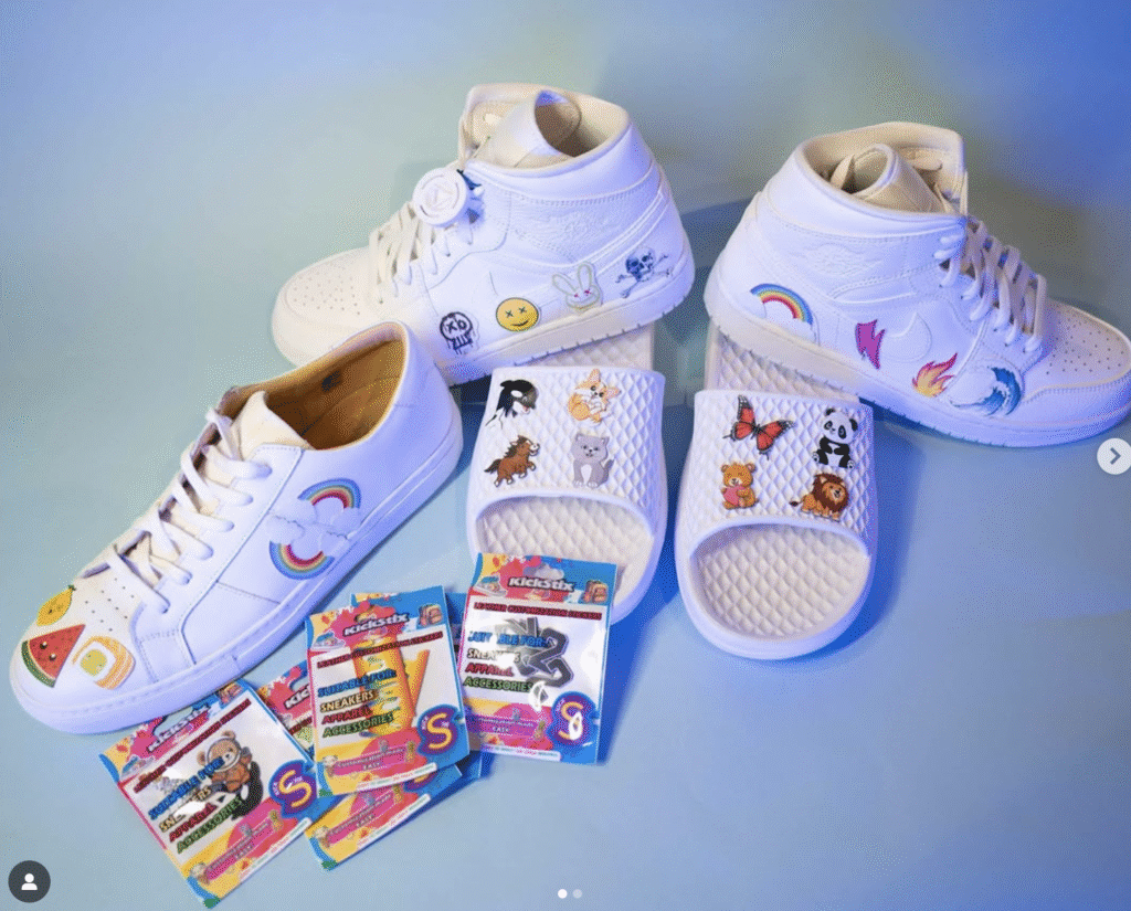 Some parents go all in with hand-painted characters or cartoon themes, but for those who want a more playful start, Kickstix has something perfect: ready-to-peel sneaker stickers that let kids decorate safely and freely. Lightning bolts, stars, initials: a Pop of personality without the mess of paint.